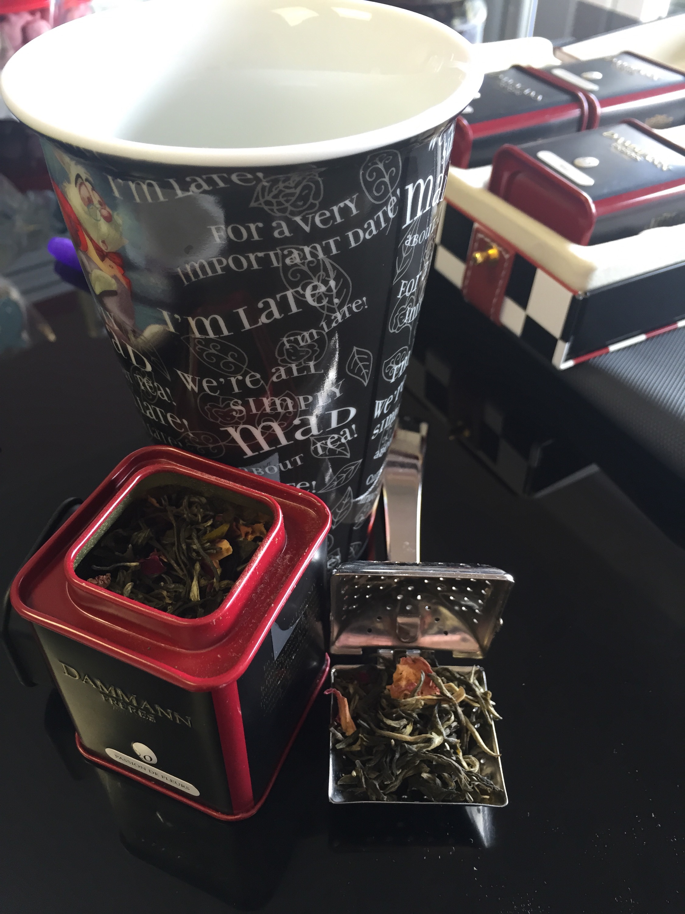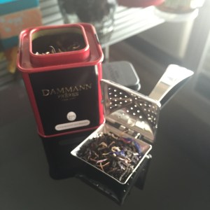 This is a black tea with poppy flower, almond paste biscuit flavor and flower petals. It is a very soft tea, and tastes of berries. The first sip makes me think of cookies – it’s probably the almond. I like this tea very much and find it soothing. I think its best for a slow morning, especially one to be spent in bed watching Netflix.